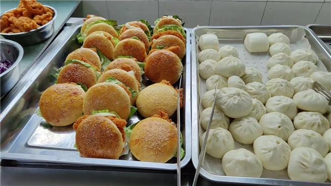 共工社3月31日电(通讯员:李辰奇)近日,中交一航局五公司广韶北扩项目部食堂内香气四溢,一排排现做的DIY汉堡整齐摆放,金黄酥脆的鸡排、新鲜脆嫩的生菜搭配松软的面包胚,与传统肉包、馒头一同成为员工餐的热门选择。这是项目部立足员工需求,创新餐饮服务、打造“中西融合”特色员工餐的一次生动实践,既让工地食堂飘出了“烟火气”,更让员工感受到了实实在在的关怀。