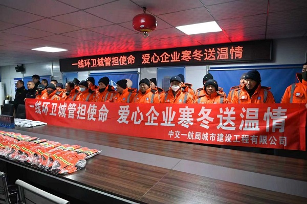 共工社3月24日电(通讯员:钱禹亨)时值深冬,为向常年奋战在严寒一线的城市美容师表达敬意与关怀,切实保障环卫工人在低温环境下的作业安全与身体健康,近日,中交一航局城建公司长春地区项目携手吉林街道办,共同组织开展“一线环卫城管担使命 爱心企业寒冬送温情”送温暖活动,为辖区环卫工人发放保暖手套、防寒帽、保温杯等实用御寒物资。