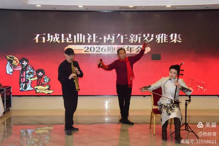 岁聿云暮,新元肇启。1.18日上午“南京石城昆曲社·丙午新岁雅集暨2026迎新年会”在满堂喜庆、丝竹悠扬中成功举办。一众曲友同仁欢聚一堂,以丰富多彩的传统戏曲、音乐与歌舞节目,共贺新春,赓续文脉,在古典艺术的深沉韵味与现代演绎的清新活力交织中,开启丙午新春的文艺新篇章。雅集由杨礼瑄主持,社长孙建昌与杨岭琴分别做了新年致辞。